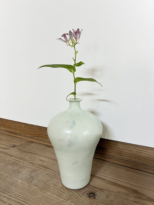 辻:まず、山本さんのこだわりについて聞かせてください。多摩美で油絵を勉強してから、どうして陶芸なんですか? 転身の理由を知りたくて。 山本:自分は絵に向いてない、っていう自覚が大学1年の終わり頃からあって、2年の後半からは絵を描かなくなって、オブジェを作り始めて。3年からは立体もできるコースを選んでオブジェばっかり作ってました。 辻:平面からすぐ立体に移ったんですね。オブジェの素材は何だったの? 山本:今でも覚えてるのは線路の枕木。あの長くて重くて硬いやつを丸ノコとかで切り刻んで、それをまた埋め戻すみたいな。 辻:大学時代からもう、立体が始まっていたんですね。それで美大を卒業してからはどうしましたか? 純粋美術の場合、卒業してもすぐ作家になれるわけもなくて、大体みんな一回、路頭に迷うじゃないですか。 山本:迷いましたね。半年ぐらいバイトしながら何しようかなって考えてました。ちょうどその頃、自由が丘にあったワサラビっていうお店で黒田泰蔵さんの白磁を見たんです。そこで「ワーッ」となって、焼きものも面白いかも、と思いました。 辻:へー、どんな作品が並んでたんですか。 山本:花入とか普通のお碗とか。コーヒーカップもありました。それも今思えばお手頃な価格で。買っておけばよかった。それで黒田さんに弟子をとってないか聞きにいったんです。弟子の枠はいっぱいだったけど、ペンションみたいな所に一日泊めてもらって、手伝いみたいなことをさせてもらって。ろくろを間近に見たのは、実はその時が初めてでした。 辻:黒田さんがろくろ回すのを見たの? 山本:もう、すごく速かったです。サンドペーパーをかけながら。無釉のを作ってたんで、仕上げの手伝いというか体験をさせてもらいました。 辻:黒田さんが使ってたのは作品と同じ白い土ですか? 山本:真っ白です。なんであんなに白いんだろうというぐらい白い。ニュージーランドだったかな、多分。陶石じゃなかったかも。それでなんか焼きものに興味を持ったんです。近場の焼きもの産地、関東だったら笠間あたりが近いから、笠間に行って仕事ないかなと思いながらリュックを背負って街をブラブラしてたら声を掛けてくれる人がいたんです。 辻:なんと、そんなことってあるんですか? 山本:そこは山の上の一軒家で、手びねりで作ってる工房でした。「ここでよかったらやってみる?」って聞かれて、その時はとりあえず働かなきゃと思ってたから「じゃ、やります」って引っ越して、そのまま笠間に1年半です。でも半年ぐらいで正直もうダメだな、ここ違うなと。なんとなく1年半いたんだけど、ちゃんと技術を身に付けたくて勉強先を探してたら有田に窯業大学校があるのを知ったんです。 辻:またすごく遠い所に。 山本:磁器発祥の地だし。もともと白磁がしたかったから。あと弟子っていうのが自分には向いてないのが分かったし。本当に向いてない、使うのも使われるのもダメなんですよ。 辻:それでもう一度陶芸の学校に行くんですね。 山本:この学校が面白くて、1年間蓋付きの飯碗しか作らせてもらえない。 辻:作家養成ではなくて、職人仕事を教える学校なんですね。 山本:絵付けコースに半年、その後、ろくろを1年勉強しました。年が上だし美大出てて職業経験もあるからちょっとは自信があったんだけど、そこで自分が線1本すら満足に引けないことに気付かされるんです。それからは呉須で線を引く練習をひたすらしました。卒業後、有田焼の草山窯(そうざんがま)っていう所で、今はもうないんですけど、そこで下絵の絵付け工をしました。 辻:有田の焼きものは完全に分業ですか? 山本:分業です。草山窯は生地もほぼ外注でした。 辻:石川で言うと輪島塗みたいな感じですね、分業の仕組みが。 山本:3年ぐらいいましたが、給料がとにかく安いんですよ、佐賀県の最低賃金の更に下なんです、職人は。ひたすら残業しても月に11万とか。でも、どっちみち作家として独立するつもりでこっちに来た時点で工房付きの家を共同で借りて、学校行ってバイト行って自分のものを作るって感じでやってましたから。